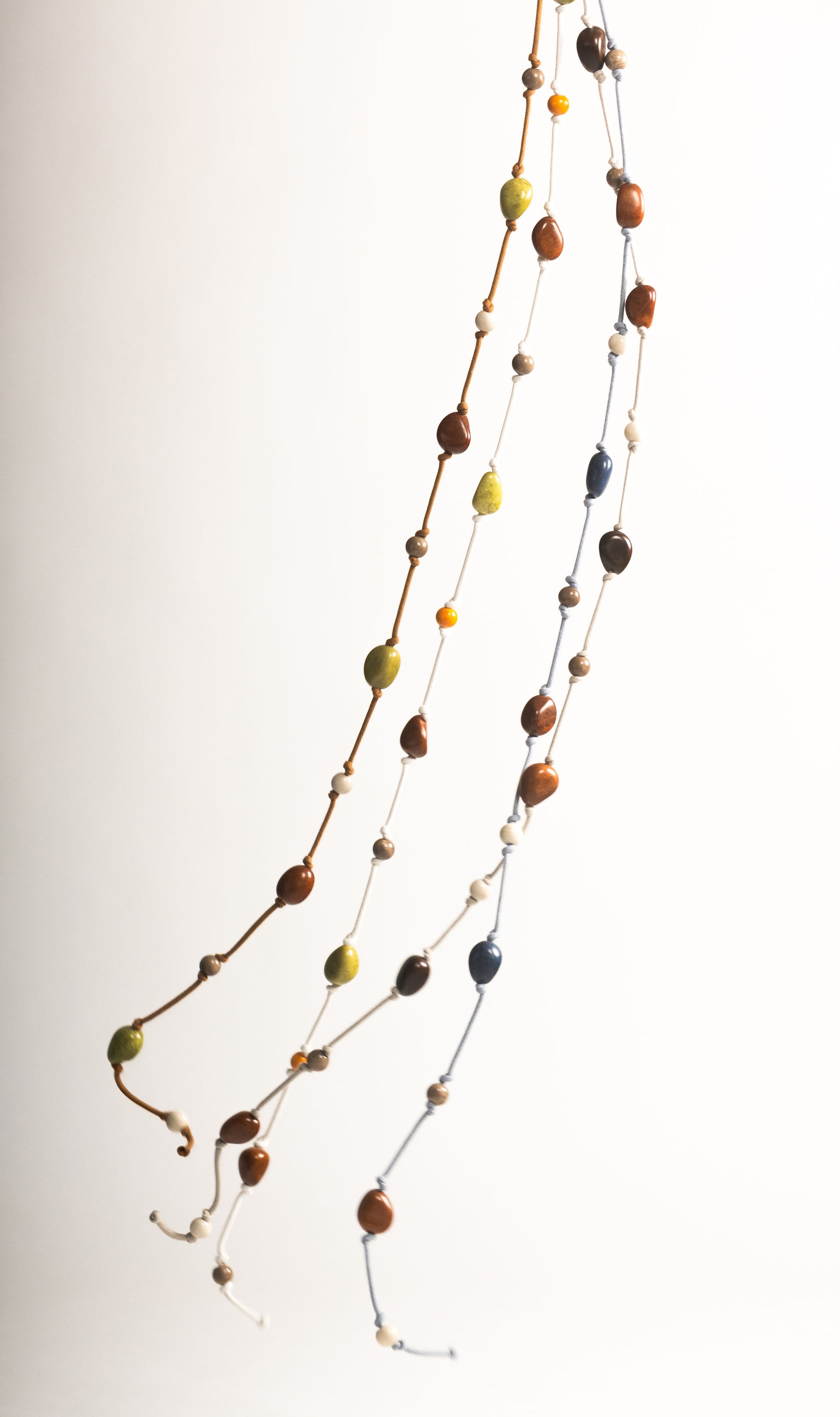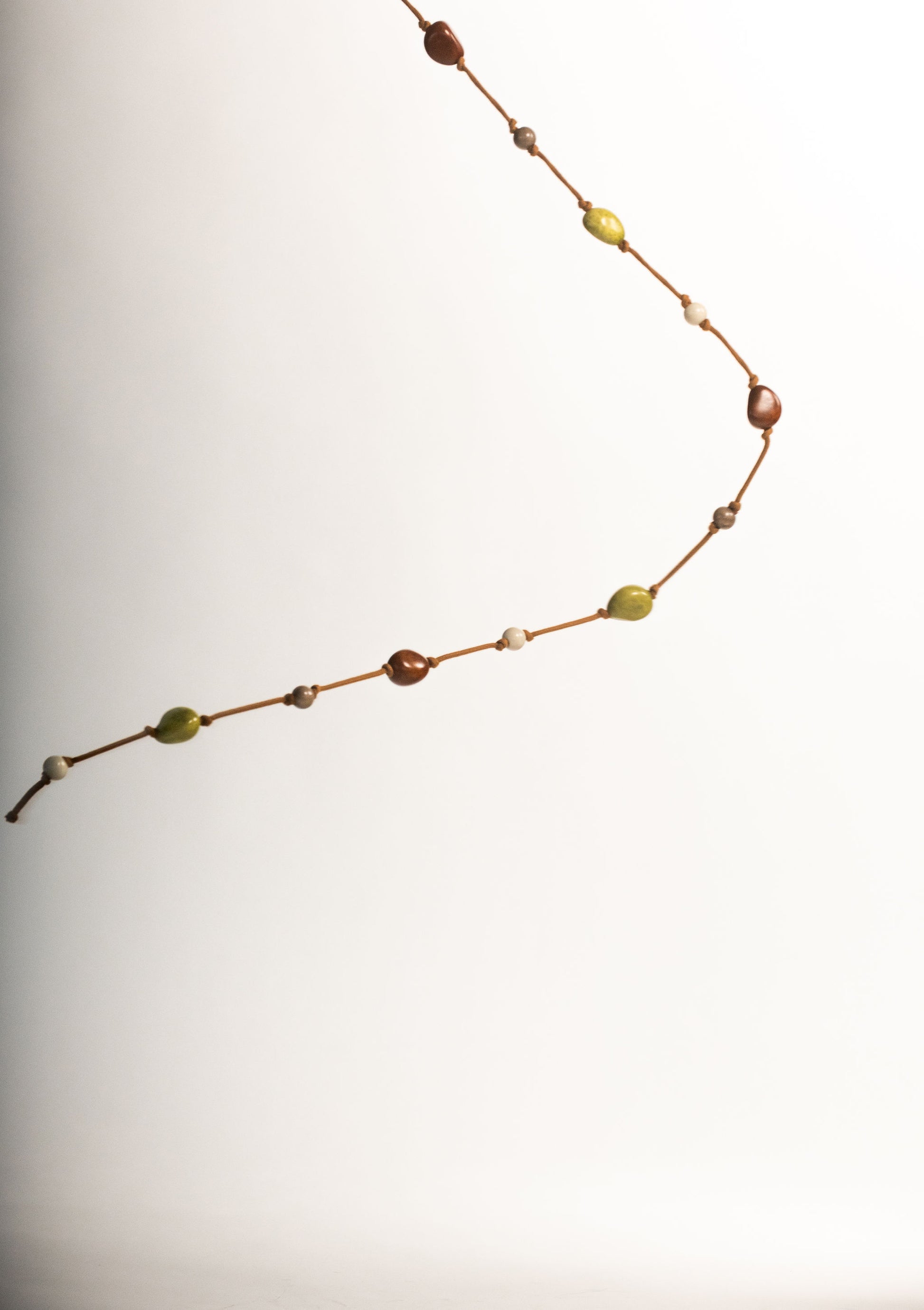 Cinturón artesanal elaborado con piezas de tagua y cordón en algodón. Cada pieza de tagua pasa por un proceso cuidadoso que toma días y horas de trabajo, desde su creación hasta llegar a formar parte del diseño final. Este detalle aporta un contraste inspirado en el concepto de Alquimia, dando profundidad y un carácter orgánico que realza cualquier silueta.